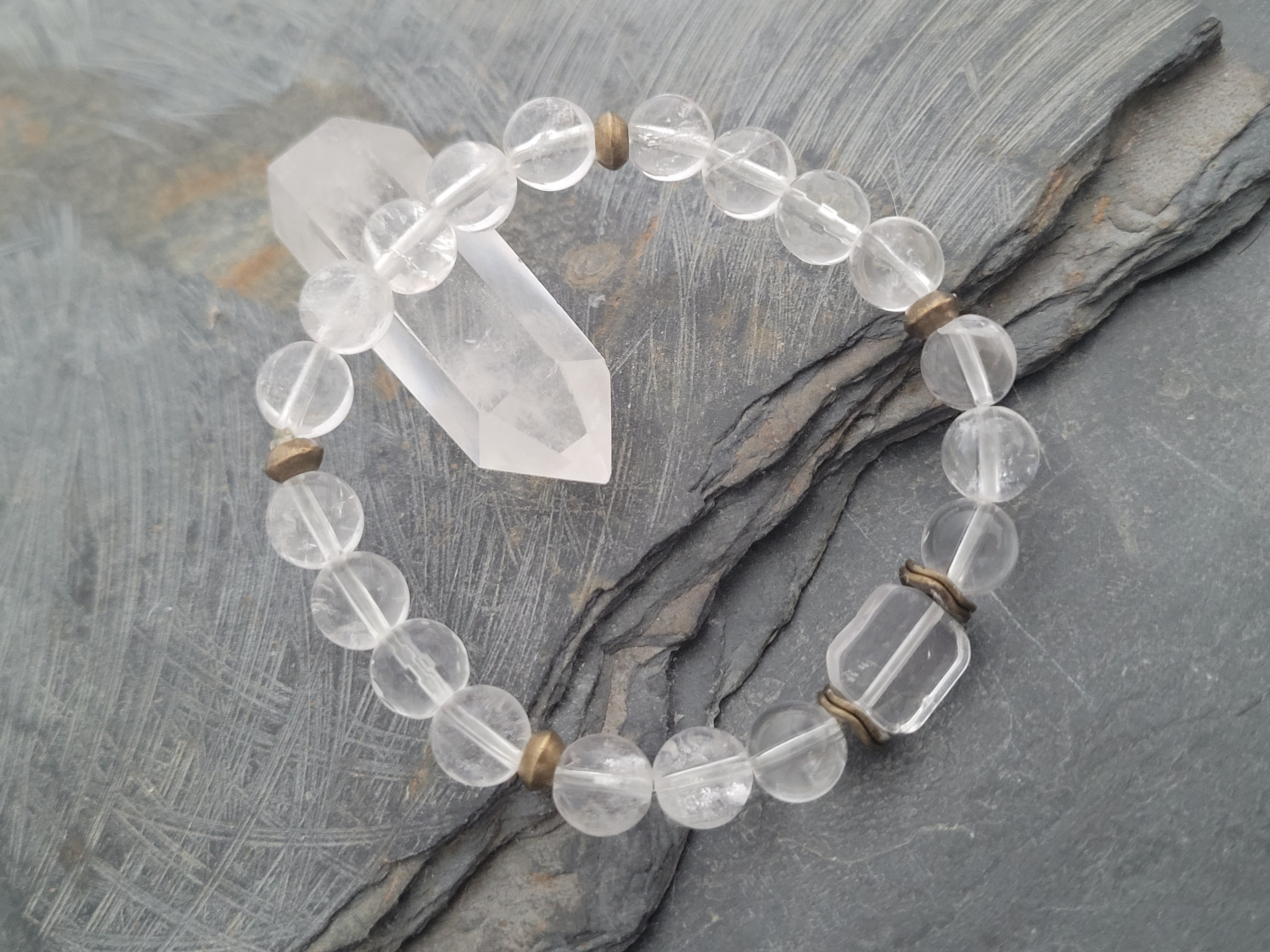 Theis bracelet stacks is absolutely perfect. The white gemstones combined with the metal accents in silver, rose gold or golden stainless steel are truly stunning. A definite positive vibe gemstone...
